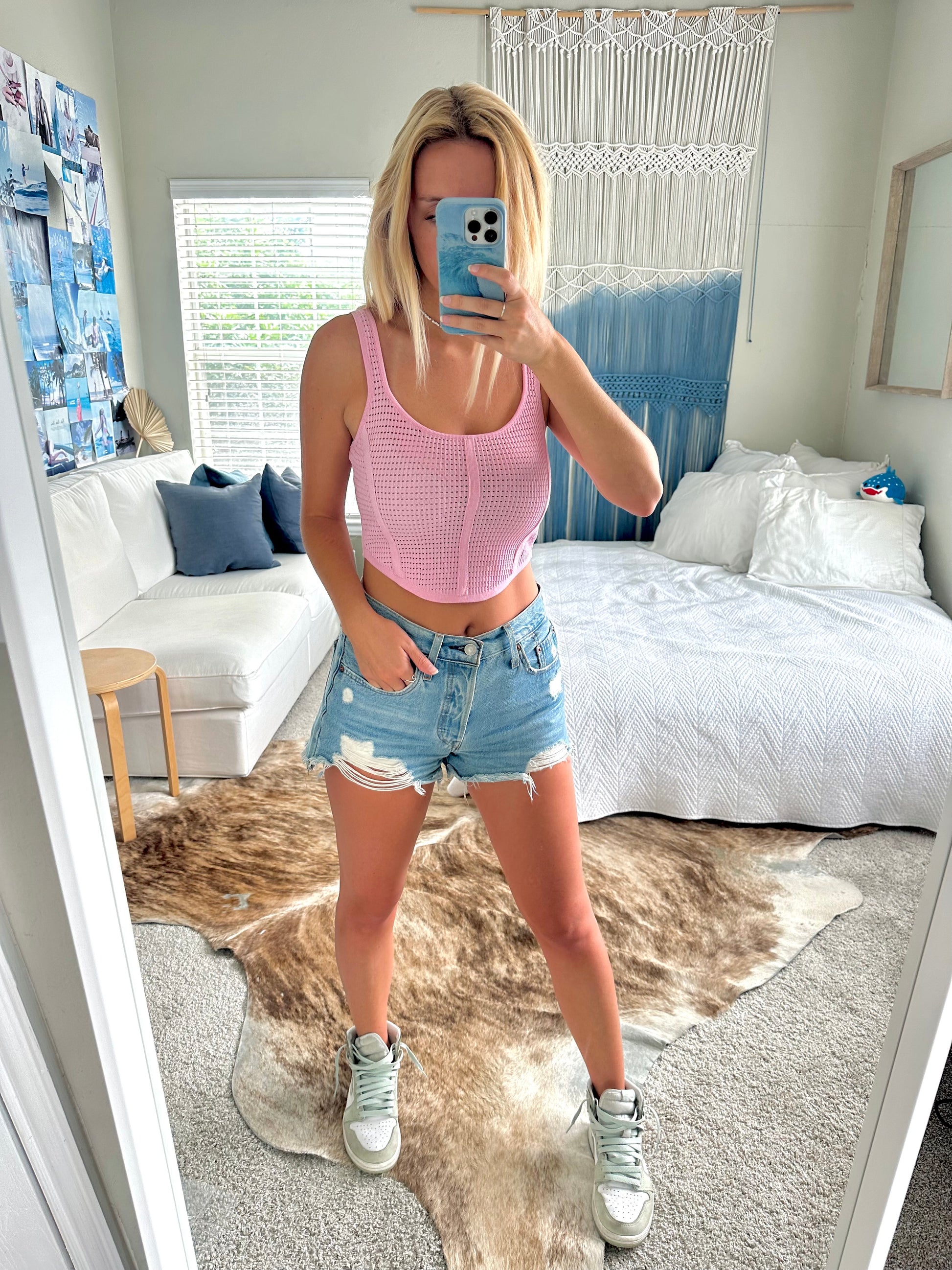 this knitted tank features a super flattering corset-style silhouette that will take you just about anywhere! from date night to day in the sun, from concert in the city to chilling on the coast.