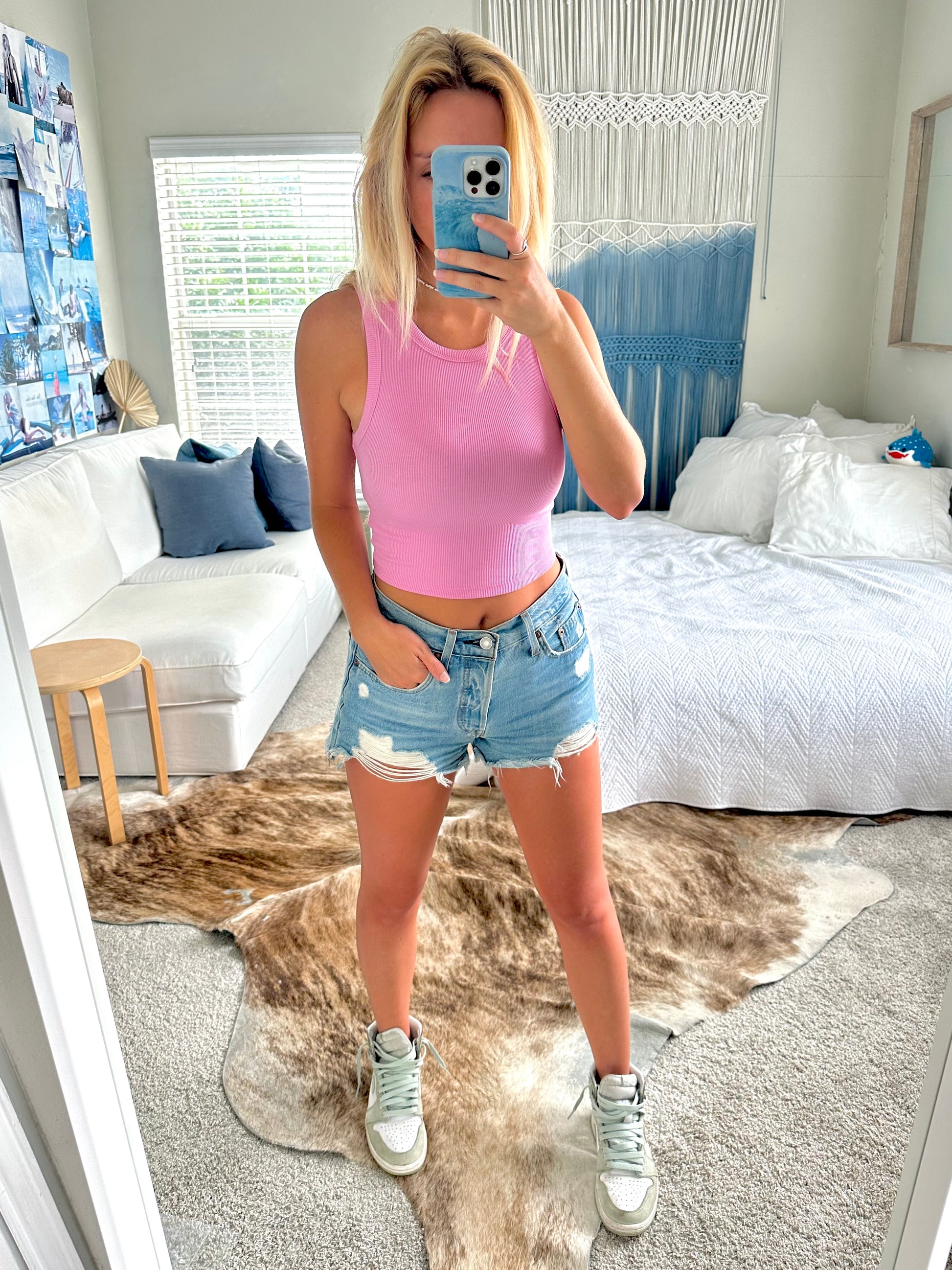 this essential ribbed cropped tank goes everywhere you go! it has just the right amount of stretch to keep you comfy no matter what. dress it up for a night out or dress it down for a walk by the lake.